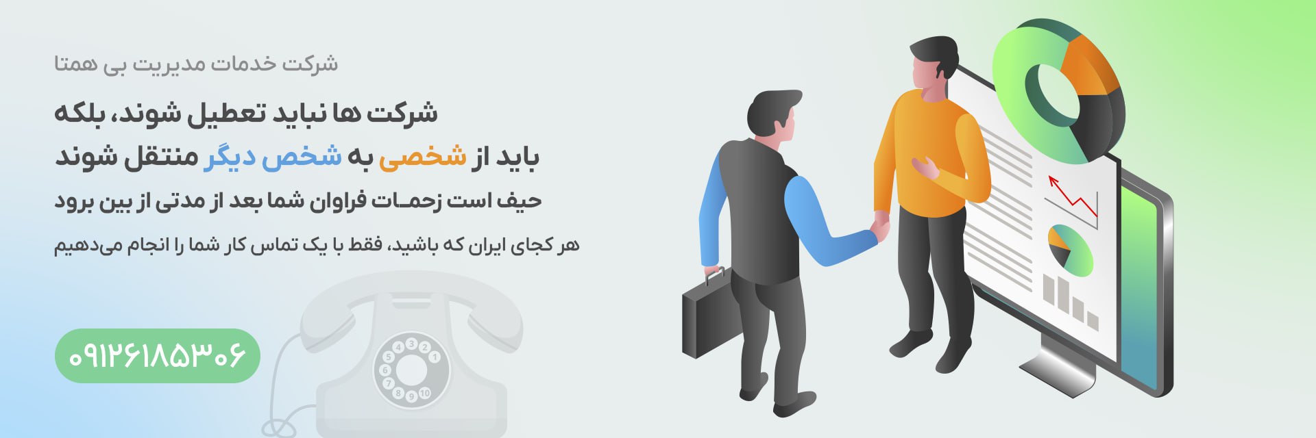 اگر به دنبال ثبت شرکت، توسعه کسبوکار، یا دریافت مشاوره تخصصی در زمینه شرکتداری هستید، شرکت خدمات مدیریت بیهمتا همراه مطمئن شماست. ما با تجربهای گسترده در امور ثبتی، حقوقی، مالی، و بازاریابی، خدماتی جامع را برای مؤسسین، مدیران و فعالان اقتصادی در سراسر ایران ارائه میدهیم.
