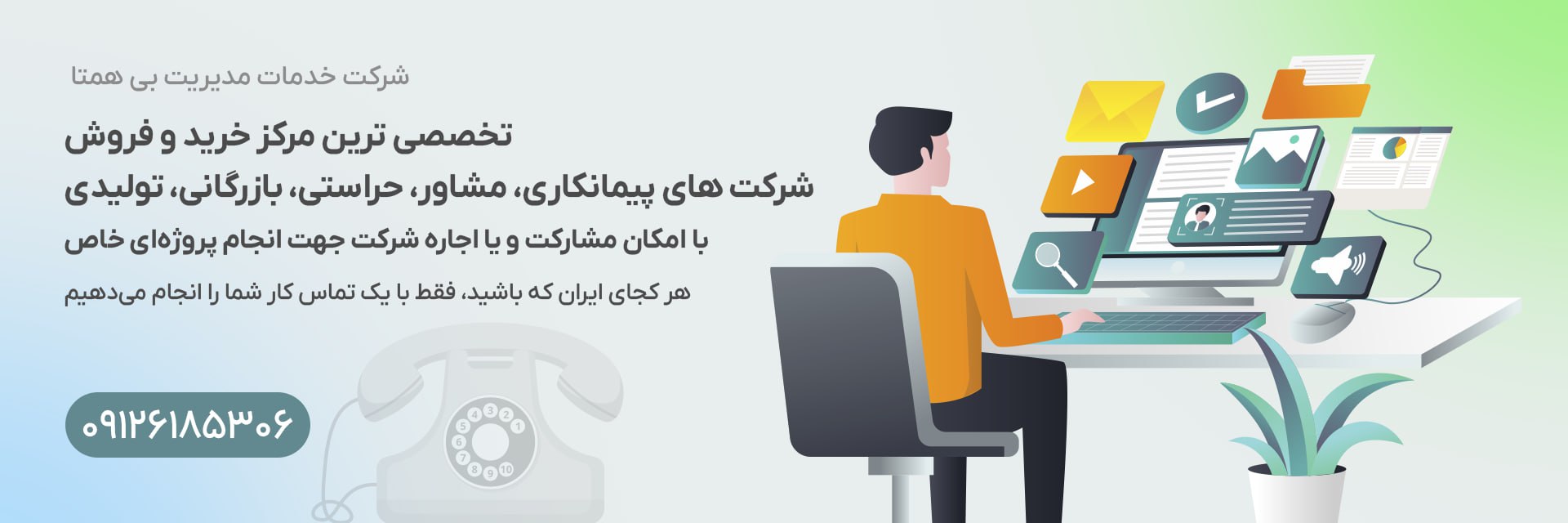 شرکت خدمات مدیریت بیهمتا با دسترسی به بانک اطلاعاتی شرکتهای آماده در حوزههای پیمانکاری، مشاوره، بازرگانی، تولیدی و خدماتی، امکان خرید شرکتهای رزومهدار را برای شما فراهم کرده است. این شرکتها دارای سابقه فعالیت، کد اقتصادی، پرونده مالیاتی و حتی مشتریان فعال هستند.