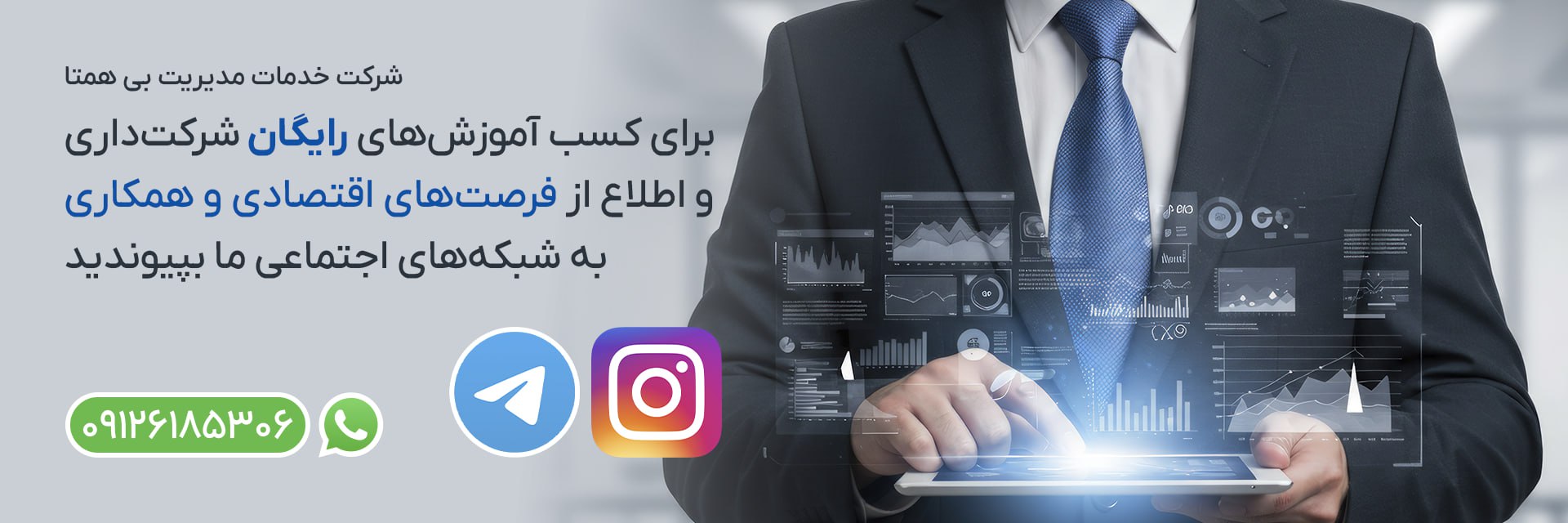 با دنبالکردن شبکههای اجتماعی شرکت خدمات مدیریت بیهمتا، به مجموعهای از آموزشهای کاربردی در زمینه ثبت شرکت، مدیریت مالی، مالیات، برندینگ و توسعه کسبوکار دسترسی خواهید داشت. این آموزشها بهصورت رایگان در اینستاگرام، یوتیوب و وبسایت ما منتشر میشوند و برای مدیران، مؤسسین و علاقهمندان به شرکتداری طراحی شدهاند. برای رشد کسبوکار خود، همین امروز به جمع مخاطبان ما بپیوندید. 📞 09126185306